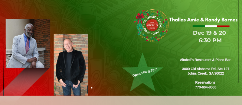 Altobeli's Restaurant & Piano 3000 Old Alabama Rd, Ste 127, Alpharetta, GA, United StatesEnjoy holiday favorites and standards from some of your favorite artists with Randy, Kathe, Pam, and Casey, along with this week's special guest Thallas Amie....
